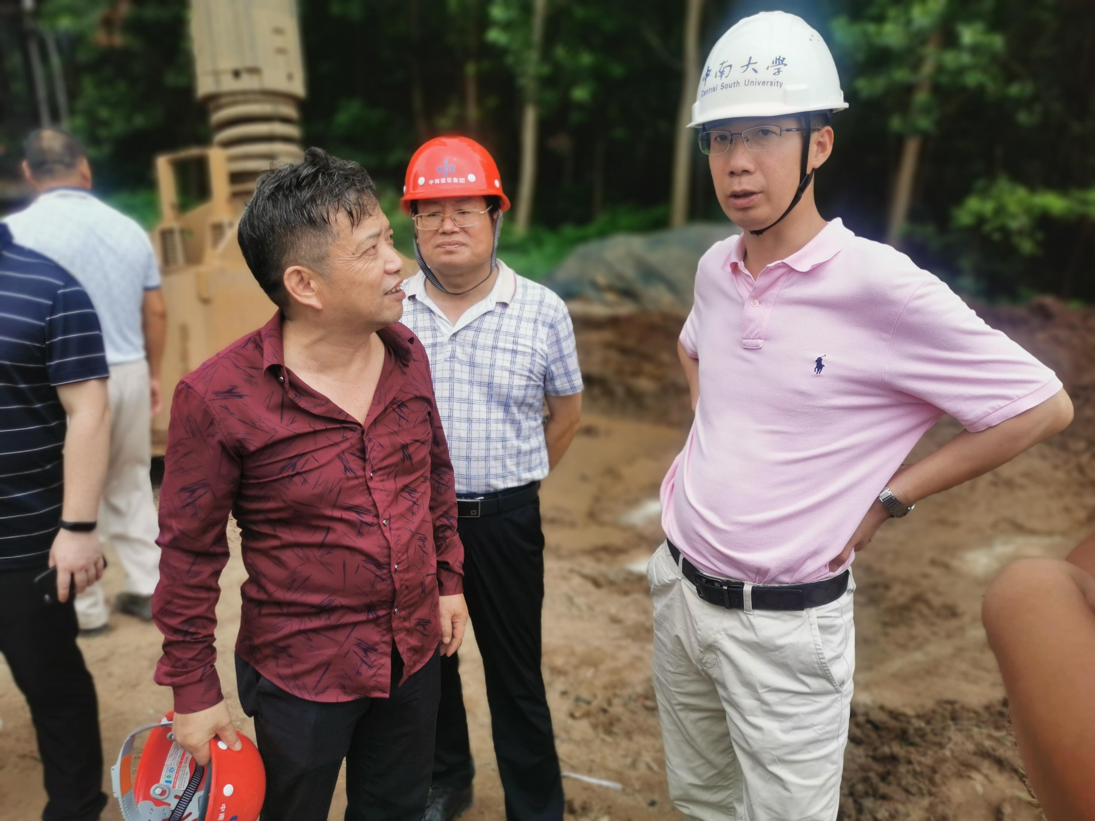 項(xiàng)目實(shí)施期間,中南大學(xué)地質(zhì)工程系主任孫平賀、公司盛漢洋及有關(guān)科研人員深入現(xiàn)場,重點(diǎn)查看了旋挖鉆機(jī)和泥漿攪拌機(jī)等設(shè)備的運(yùn)行狀況及泥漿配比的落實(shí)情況,孫平賀針對旋挖鉆機(jī)在超深大直徑復(fù)雜地層的地質(zhì)狀況,就泥漿配比如何操作等問題提出了建設(shè)性的建議。